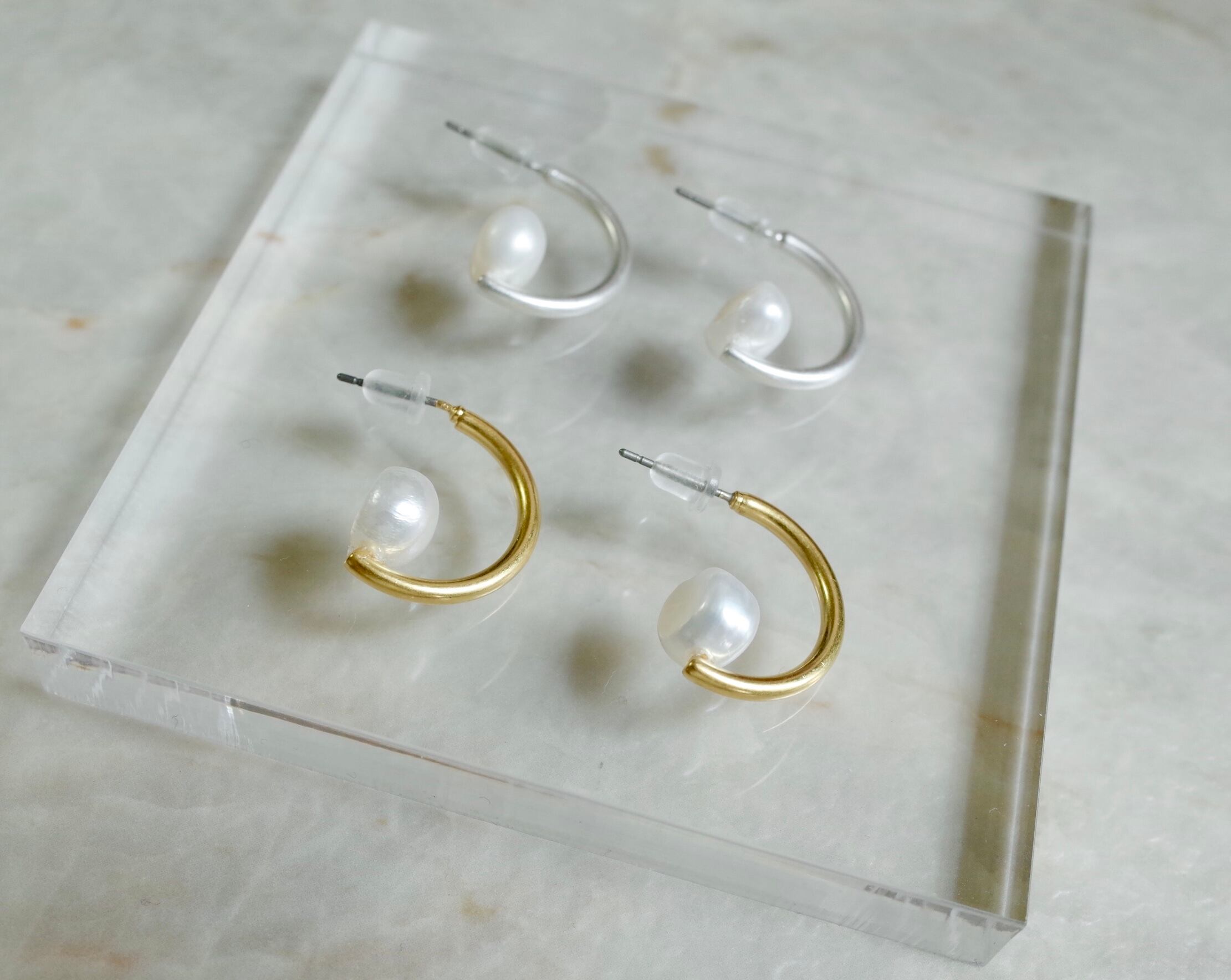 淡水パール ハーフムーンピアス